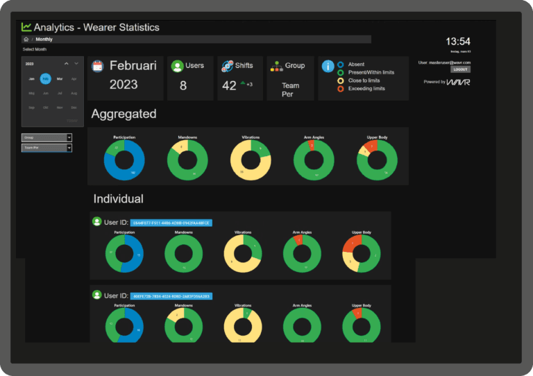 - Designed for HSE professionals and ergonomistsProvides reports and statistics on employee movement and exposureIdentifies exceeded action and limit valuesCovers whole-body vibration, body postures, arm positions, and shock incidentsUses recognized standards and ergonomic guidelines for filteringAllows filtering by time, organization level, and individual employees to target improvements